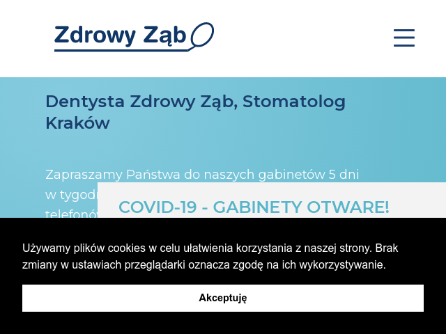 Czym charakteryzuje się właściwy dentysta? Stworzenie komfortowych warunków w trakcie wizyty i zatroszczenie się o samopoczucie pacjenta to aspekty, które powinien zagwarantować przede wszystkim. O prędki i przyjemny przebieg wizyty oraz o komfort zatroszczy się prowadzony przez nas gabinet stomatologiczny Zdrowy Ząb. Doświadczona opieka medyczna pod okiem najodpowiedniej wykwalifikowanych znawców w swojej dziedzinie to coś, co możemy Tobie zapewnić! Nasze usługi świadczymy tak, żeby spełnić wyczekiwania pacjentów, skutkiem tego dzięki nam bez większych trudów zapomnisz o problemie zdrowotnym! O Twoje uzębienie zatroszczy się prawdziwy ekspert, bowiem w klinice Zdrowy Ząb każdy dentysta Kraków jest zawodowcem w swojej dziedzinie. Nienagannie wyposażone gabinety lecznicze sprawiają, iż każdy stworzony przez nas stomatolog Kraków, może wykonać szereg potrzebnych badań oraz zabiegów na miejscu. Zabiegi medyczne wykonywane w stworzonym przez nas gabinecie Zdrowy Ząb to definicja najwyższej jakości w najniższej cenie na rynku! Klinika Zdrowy Ząb to miejsce, które spełni wymagania nawet najbardziej wymagających klientów – najlepszym dowodem są opinie klientów oraz zadowoleni, powracający do nas pacjenci.